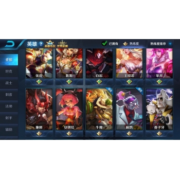 • 李白全皮肤,关羽冰封,黑猫爱糖果,拳王,霸王别姬……